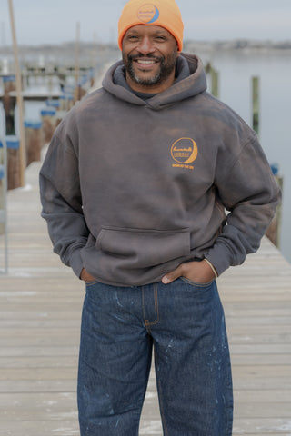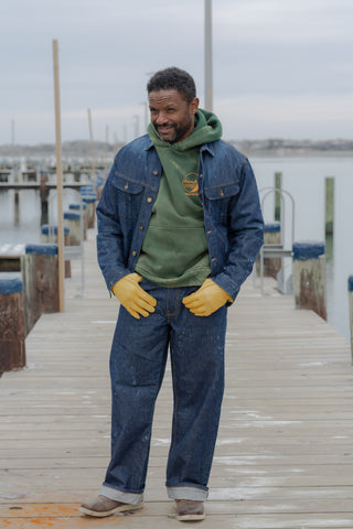 American-made denim finished through sustained tidal washing, guided by the lunar cycle.