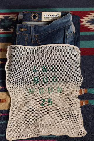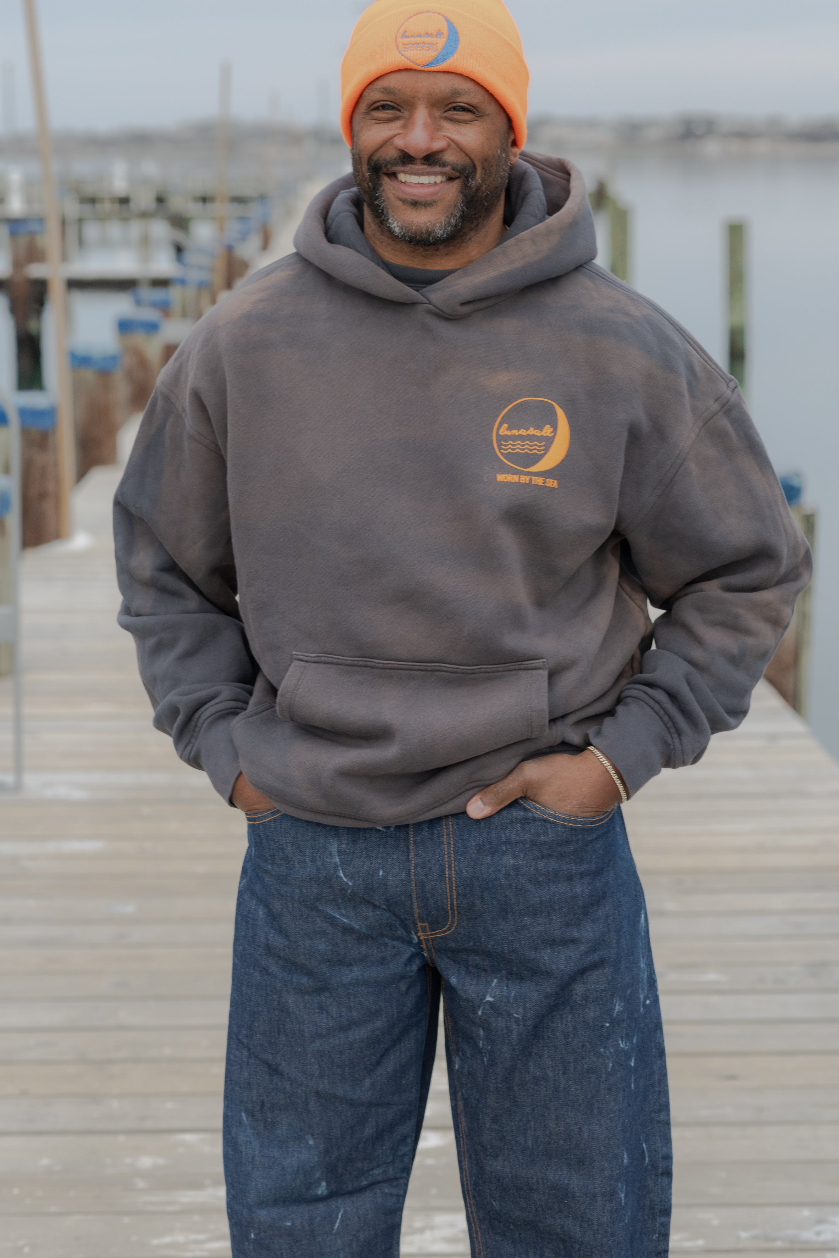 From there, every piece enters the SeaWash cycle: a full lunar month—twenty-eight days and twenty-eight nights—sealed inside an oyster bag and submerged in Nantucket’s tidal water. Guided by the moon, the garment is worked by salt, sun, and moving water. The process eases the hand of the fleece and creates subtle, organic shifts in tone and surface character that cannot be replicated by enzyme washes, stone treatments, or mechanical abrasion.