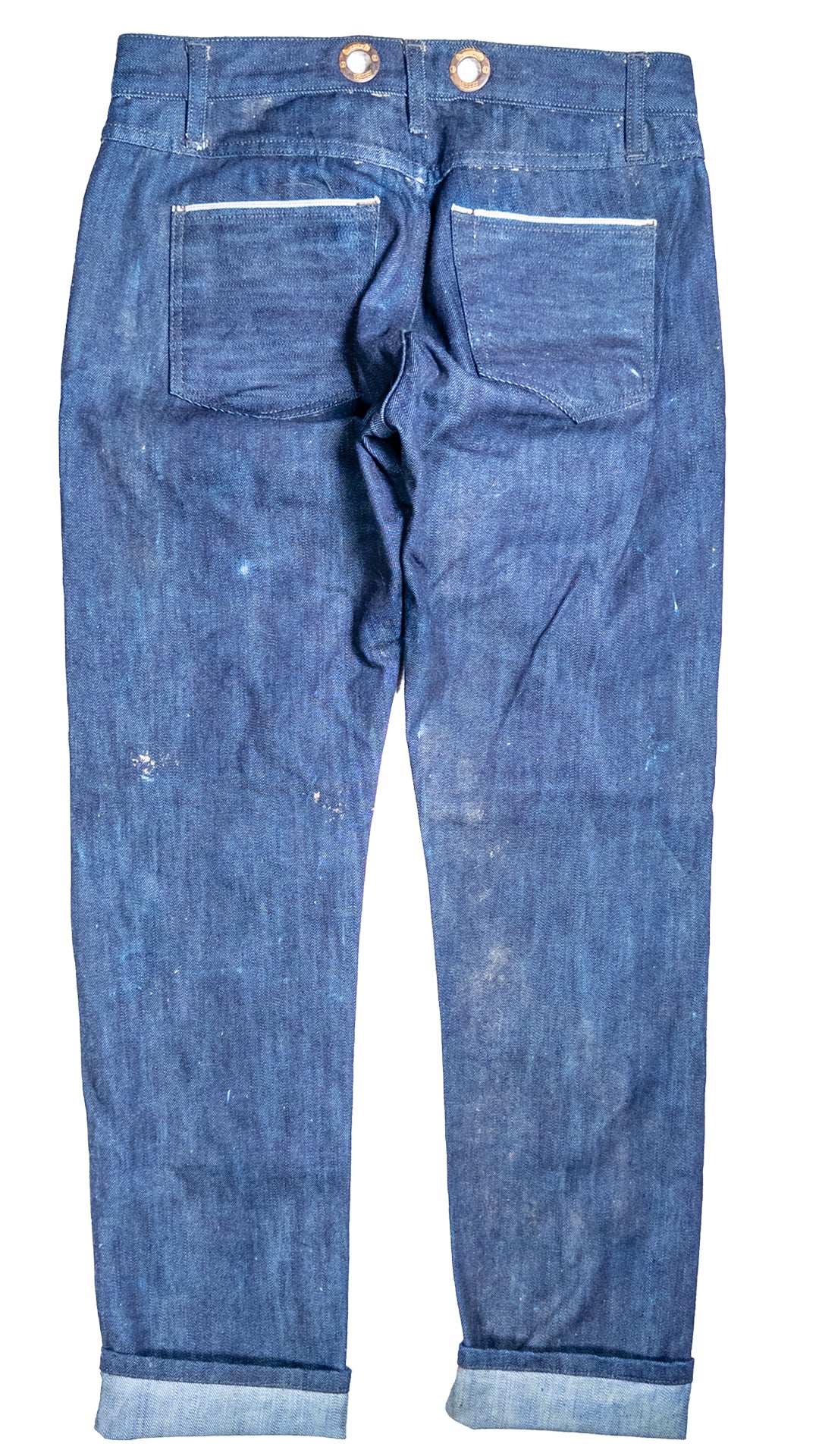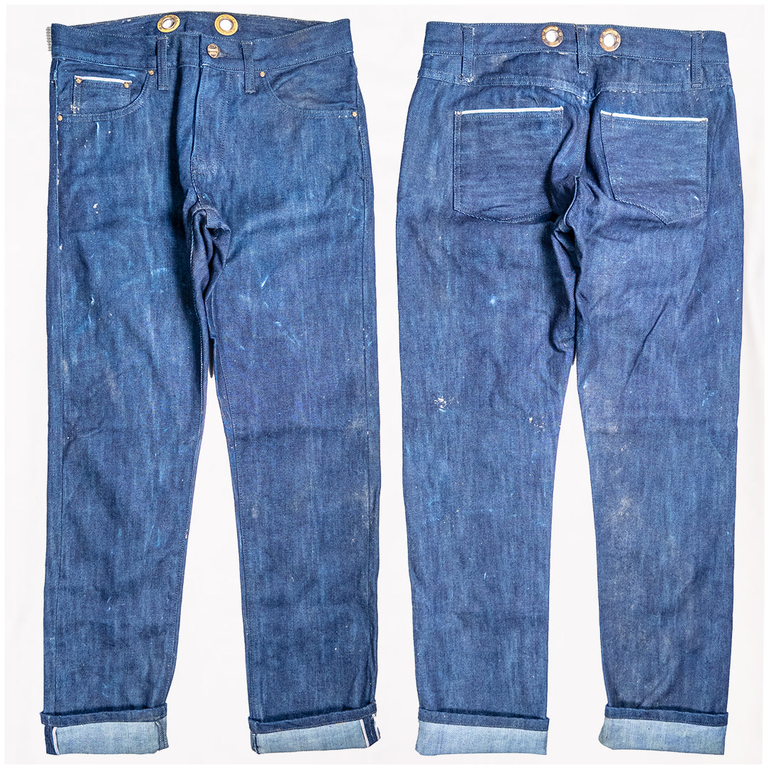 Hardware: Signature grommets, button fly, crescent rivets, brass jean tack.