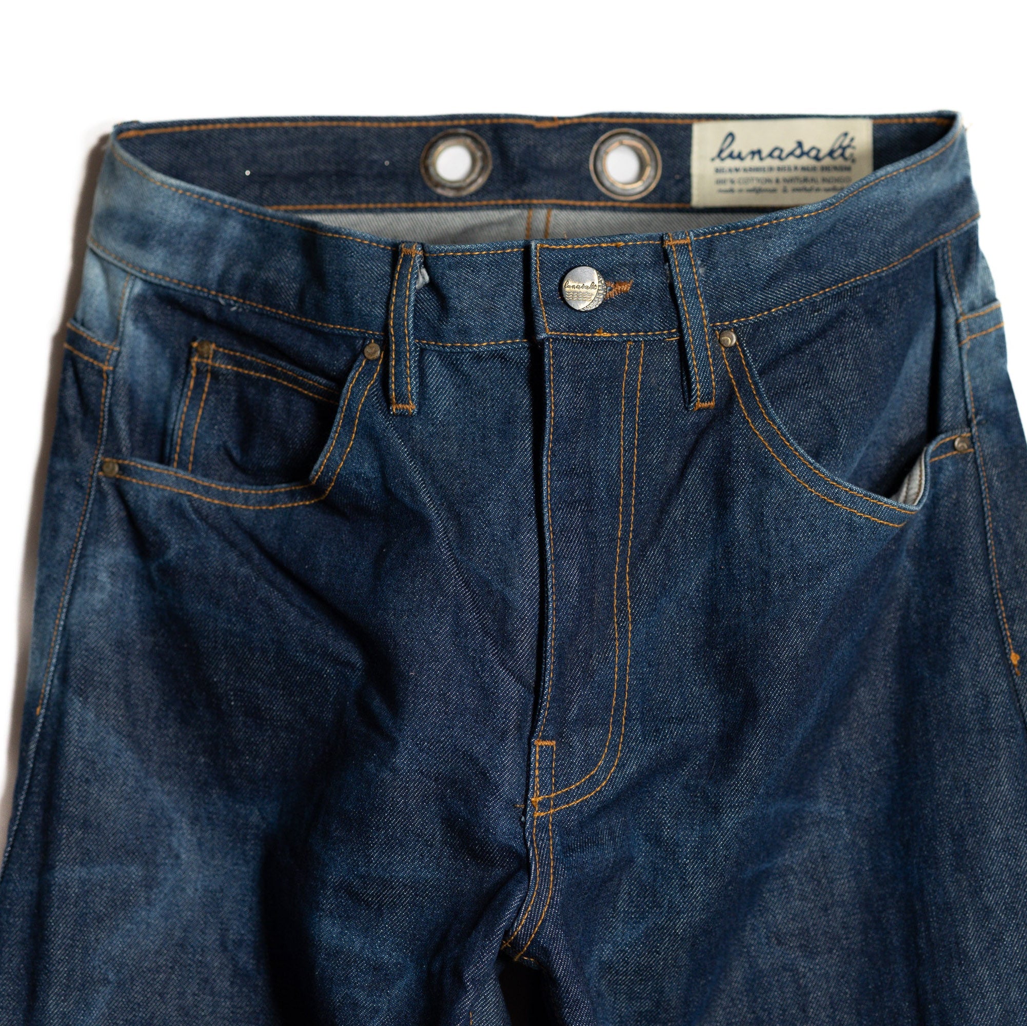 The wash spanned a full lunar cycle beginning on the Bud Moon. The denim remained submerged and in motion, worked by tide, silt, and shifting light. No machines were used. No steps were rushed or repeated.