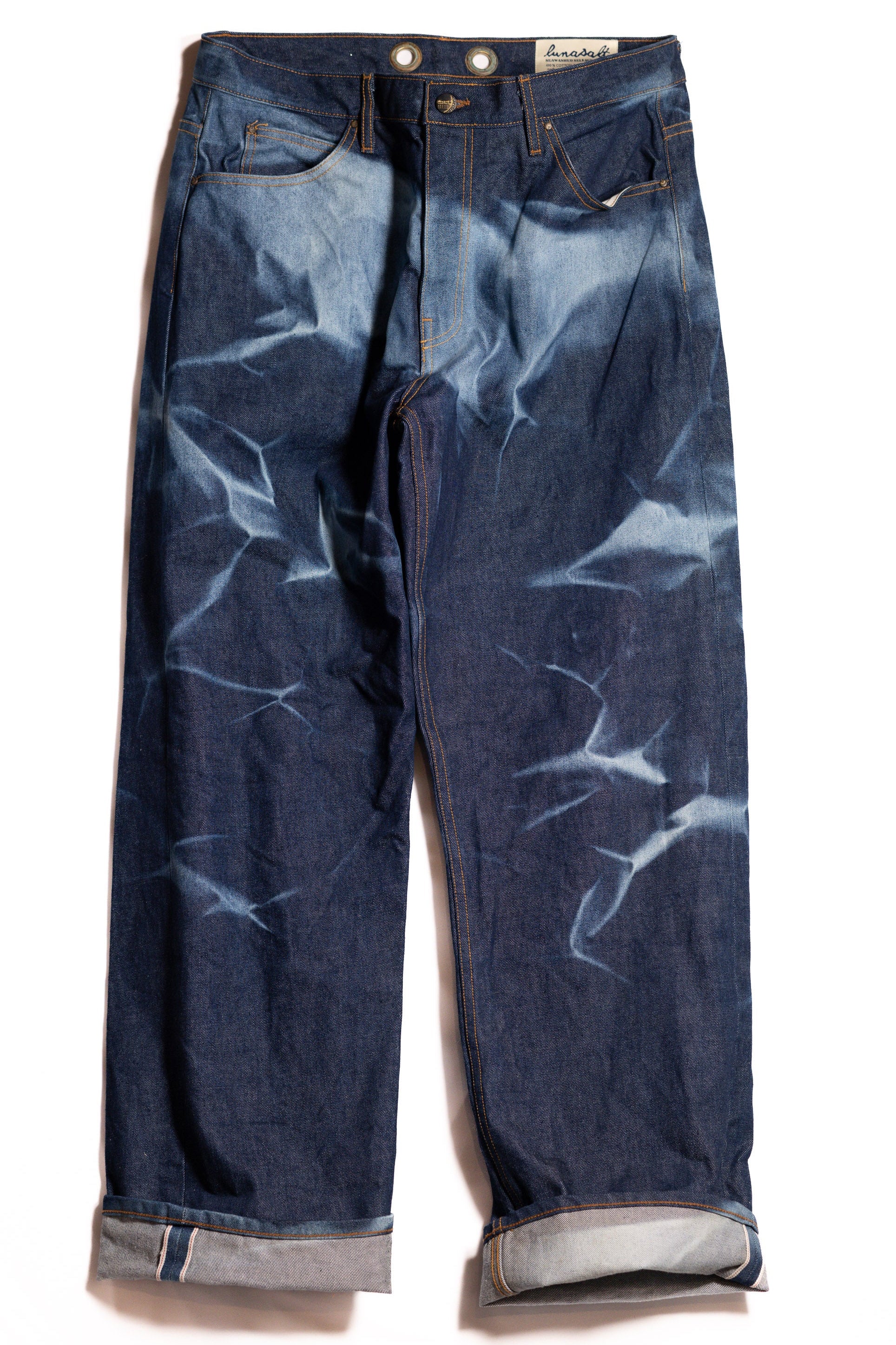 Washed in open tidal water and left in motion, the denim was worked by salt, current, and late-season light. The Harvest Moon marks the close of the cycle, not a formula. Conditions were allowed to run their course.